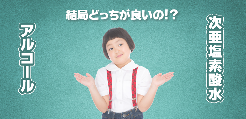 アルコールと次亜塩素酸水それぞれが違うことは分かっているけど、結局のところどちらが良いのか分からないという声がたくさんあります。